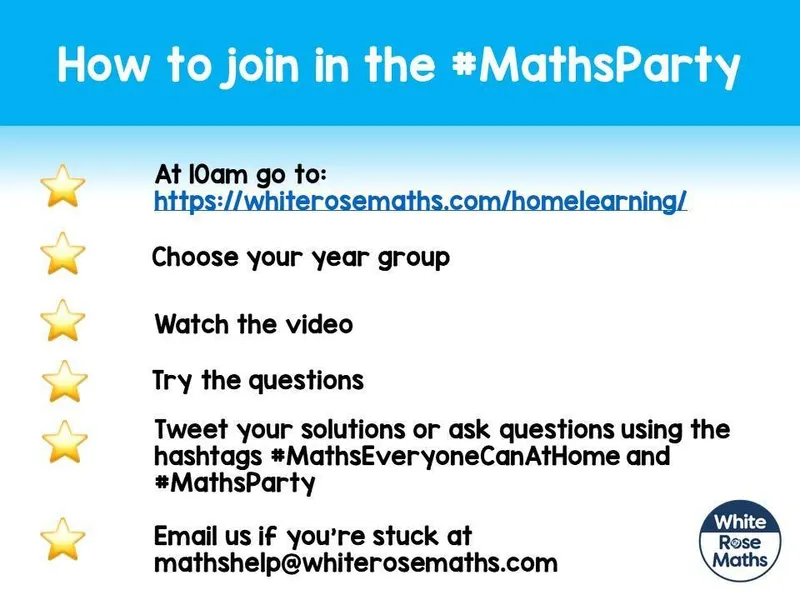 The White Rose Maths Team has prepared a series of five brand new maths lessons for each year group from Years 1-8. Every lesson comes with a short video showing you clearly and simply how to help your child to complete the activity successfully.